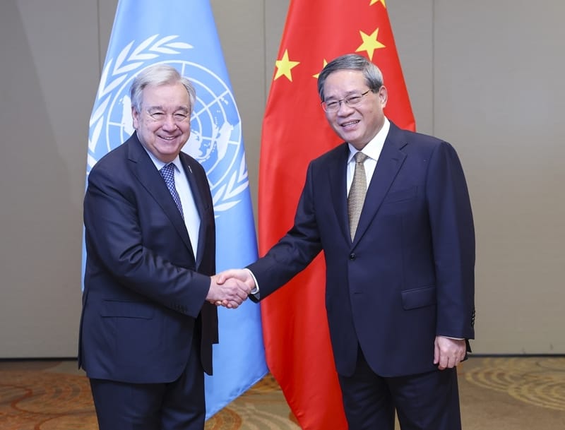 ریو ڈی جنیرو (نیوز ڈیسک) چینی وزیر اعظم لی چھیانگ نے اقوام متحدہ کے سیکرٹری جنرل انتونیو گوتریس سے ملاقات کی۔بدھ کے روز لی چھیانگ نے کہا کہ 80 سال قبل اپنے قیام کے بعد سے اقوام متحدہ نے عالمی امن و امان کو برقرار رکھنے اور مشترکہ ترقی کو فروغ دینے میں اہم کردار ادا کیا ہے۔