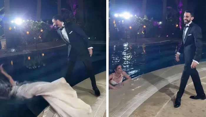 مصر میں شادی کے روز دولہا نے اپنی دلہن کو جان بوجھ کر تالاب میں گرا دیا، جس کی ویڈیو سوشل میڈیا پر وائرل ہوگئی۔