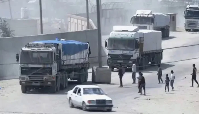 امدادی ٹرک غزہ پٹی میں داخل ہونا شروع ہوگئے: مصری سرکاری میڈیا