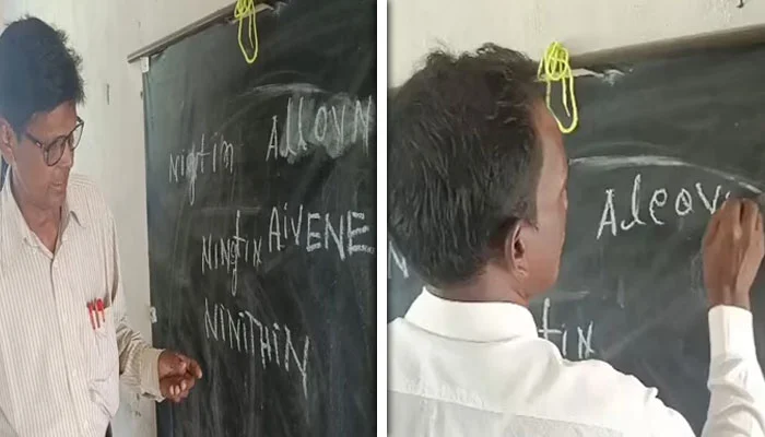 بھارتی ریاست چھتیس گڑھ کے ایک سرکاری اسکول سے انگریزی کے استاد کی دلچسپ ویڈیو وائرل ہو رہی ہے جس میں ٹیچر کو "الیون” کی انگریزی اسپیلنگ لکھنے میں مشکل کا سامنا ہے۔