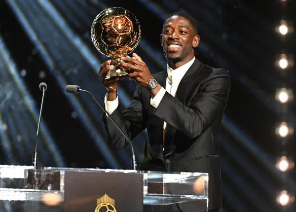 تفصیلات کے مطابق پیرس سینٹ جرمین (پی ایس جی) کلب کے اسٹار فٹبالر عثمان ڈیمبیلے نے فٹبال کی دنیا کا سب سے بڑا انفرادی اعزاز بیلن ڈی اور جیت کر نئی تاریخ رقم کر دی۔