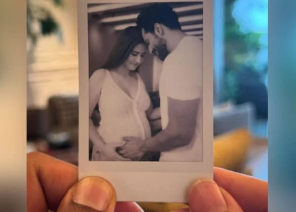 تصویر میں وکی اور کترینہ ایک ساتھ خوشگوار موڈ میں دکھائی دے رہے ہیں جبکہ کترینہ کا بے بی بمپ واضح نظر آرہا ہے۔ تصویر کیساتھ کیپشن میں لکھا تھا ’خوشی اور تشکر سے بھرے دلوں کے ساتھ اہم اپنی زندگی کا بہترین نیا باب شروع کرنے جارہے ہیں‘۔